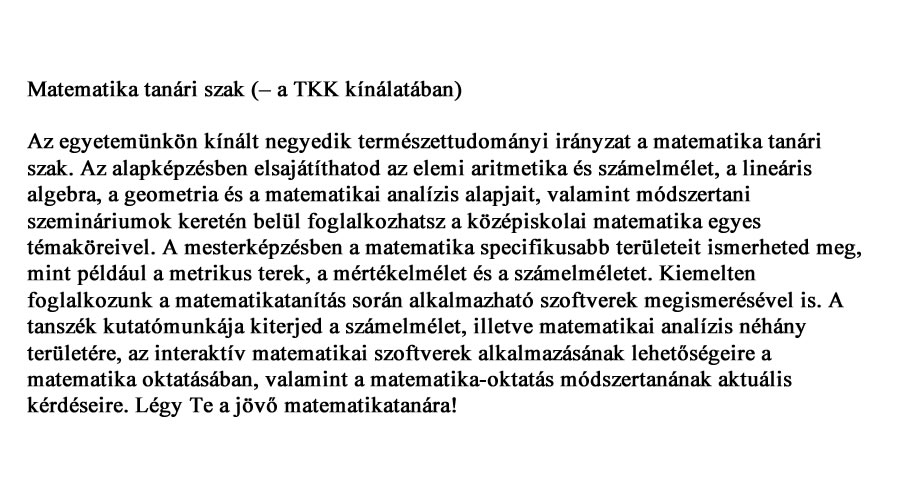 Tanárképzés szakpárosításban (az alábbi szakokat szabadon lehet párosítani):