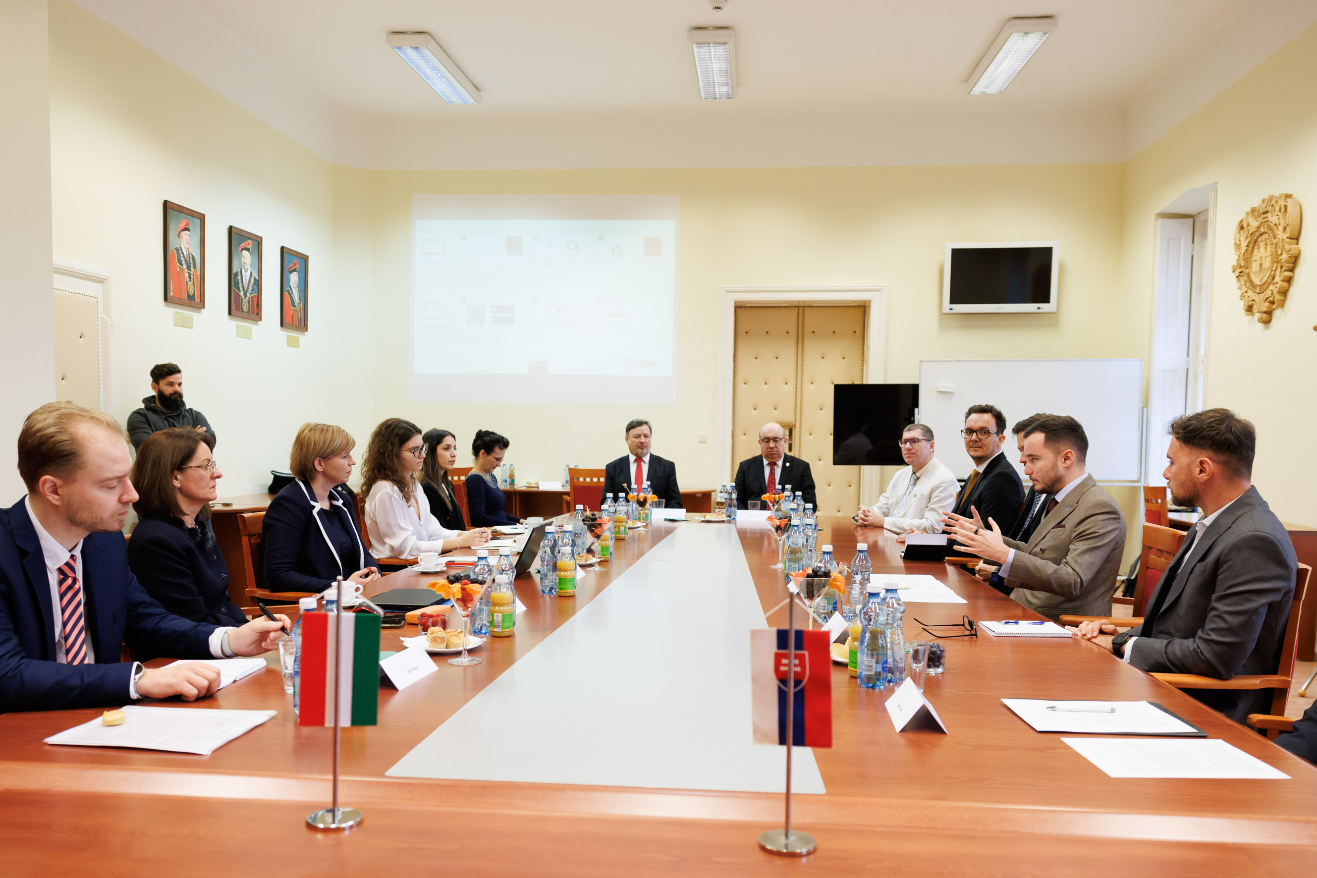Varga-Bajusz Veronika, a Kulturális és Innovációs Minisztérium felsőoktatásért, szak- és felnőttképzésért, fiatalokért felelős államtitkára, valamint Róbert Zsembera, a Szlovák Oktatási Minisztérium felsőoktatásért felelős államtitkára 2025. január 28-án egyeztetést tartott egyetemünkön. A magyar-szlovák oktatásügyi kapcsolatok erősítését szolgáló találkozó során a tárgyaló felek megállapodtak abban, hogy a közeljövőben vegyes magyar-szlovák oktatási munkacsoportot hoznak létre. Az új platform célja, hogy a szlovákiai és magyarországi egyetemek, az akkreditációs ügynökségek, valamint a minőségbiztosítási szakemberek közösen tudjanak tapasztalatot cserélni és együtt dolgozni a jövőben.