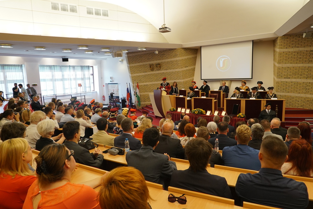 A továbbiakban Róbert Zsembera, a Szlovák Oktatásügyi Minisztérium felsőoktatásért felelős államtitkára, Nacsa Lőrinc, a Miniszterelnökség nemzetpolitikáért felelős államtitkára és Vladimír Hiadlovský, a Szlovák Rektori Konferencia elnöke méltatták intézményünket, hangsúlyozva annak a szlovákiai felsőoktatásban és a Kárpát-medence térségében betöltött különleges helyét és szerepét. Hivatalába való beiktatatása alkalmából elismerő szavakkal illették az egyetem rektorát, sok sikert kívánva a minőségi oktatás megvalósításához. Keszegh Béla, Komárom város polgármestere főként az egyetem új és jelenlegi hallgatóihoz intézte szavait, biztosítva őket a város támogatásáról.