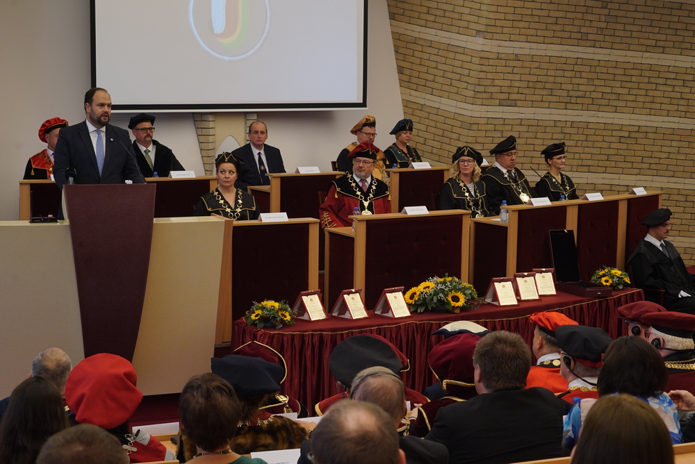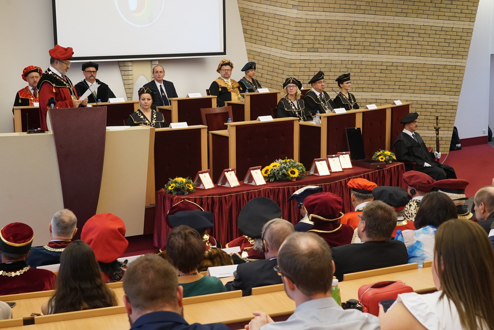 Az ünnepségen elsőként az újonnan kinevezett rektor köszöntötte a meghívott vendégeket. Beszédében ismertette az elmúlt akadémiai év legfontosabb eseményeit, kiemelten foglalkozott a VER2026 tudománymetriai értékeléssel, az egyetem minőségbiztosítási rendszerével, az új gyakorlatorientált és doktori tanulmányi programokkal, a hallgatói létszámok alakulásával. Hangsúlyozta, hogy a hallgatók száma már évek óta stabil az intézményben, ami fontos a tervezhető fejlődés szempontjából is.