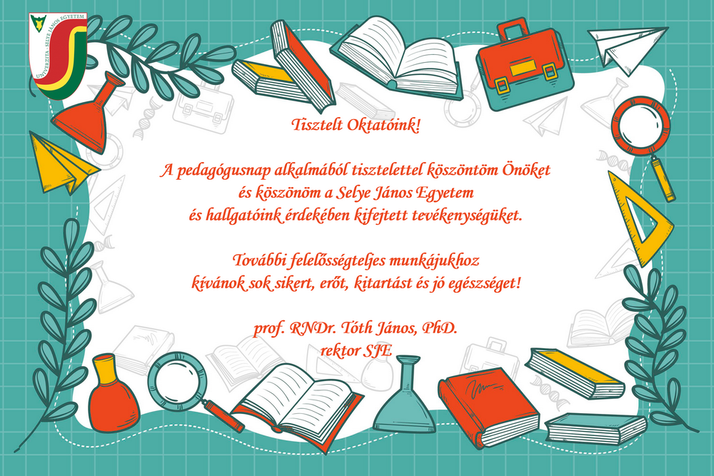 A pedagógusnap alkalmából tisztelettel köszöntöm Önöket és köszönöm a Selye János Egyetem és a hallgatóink érdekében kifejtett tevékenységüket.