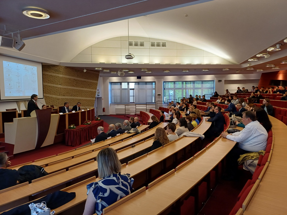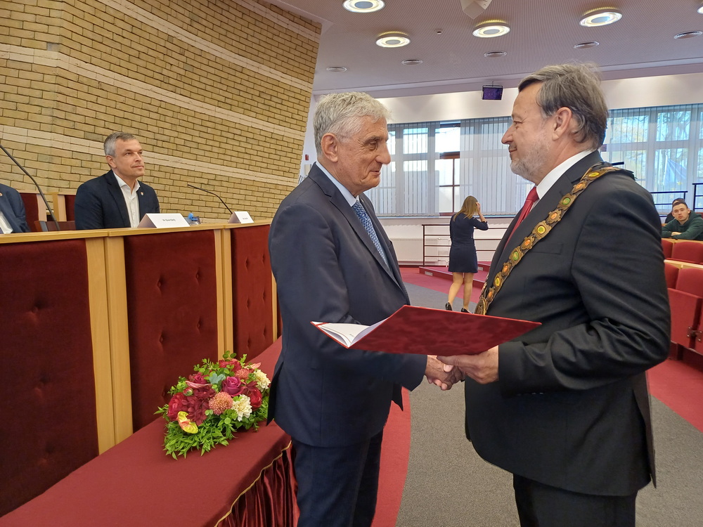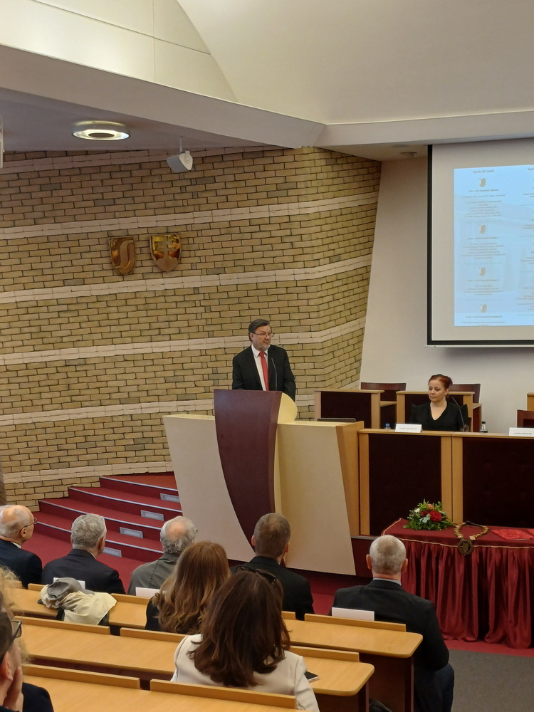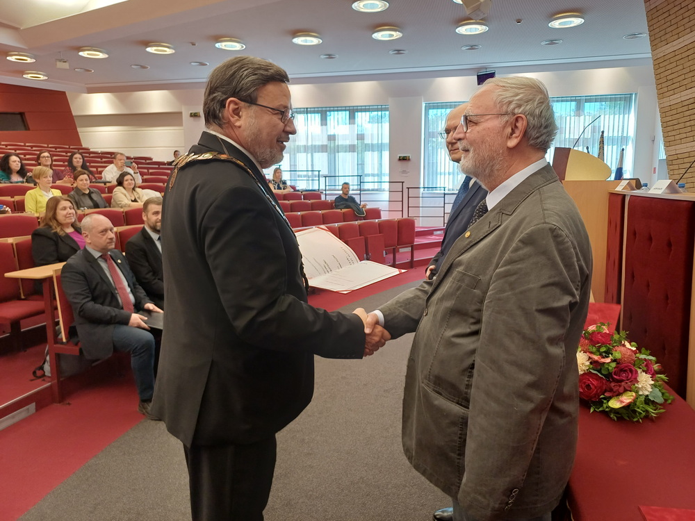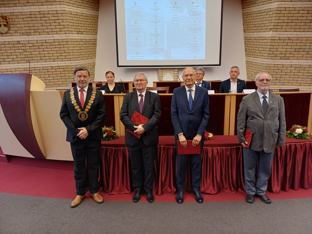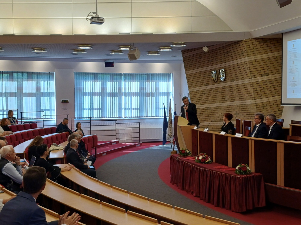 A nyitónap délelőttje az ünnepélyes megnyitóval és díjátadóval indult. A résztvevőket prof. RNDr. Tóth János, PhD., az egyetem rektora köszöntötte, majd sor került a „professor emeritus” címek átadására. Az elismerést prof. Dr. Németh András, DSc., prof. Dr. Poór József, DSc., prof. Dr. Pukánszky Béla István, DSc., valamint Dr. habil. Szarka László, CSc., egyetemi professzor vehette át.