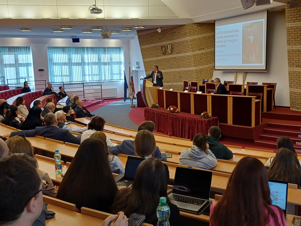 A megnyitót követően két plenáris előadás gazdagította a programot. Elsőként Dr. Kocsis Károly akadémikus tartott előadást a Magyar Tudományos Akadémia köztestületéről, különös tekintettel a külső köztestületi tagokra. Ezt követően Mgr. Keszegh Béla, Komárom város polgármestere osztotta meg gondolatait arról a három kulcsfontosságú tényezőről, amelyek a következő években alapvetően befolyásolhatják életünket.