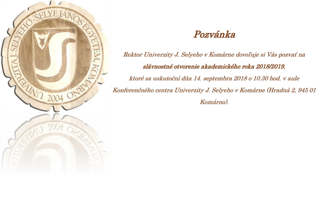 srdečne Vás vítam na slávnostnom otvorení akademického roka 2018/19 na Univerzite J. Selyeho, ktoré organizujeme na našej univerzite v poradí už 15-krát. Ďakujem, že ste aj tentokrát prijali naše pozvanie, aby ste spoločne s nami oslávili tento vzácny deň, Vaša prítomnosť na tomto podujatí umocňuje slávnostnú atmosféru dnešného dňa. Príhovor rektora, ktorý odznie na slávnostnom otvorení nového akademického roka, je aj akousi výročnou správou o dianiach a podujatiach prechádzajúceho akademického roka, dovoľte mi prosím, aby som Vás oboznámil s týmito udalosťami.