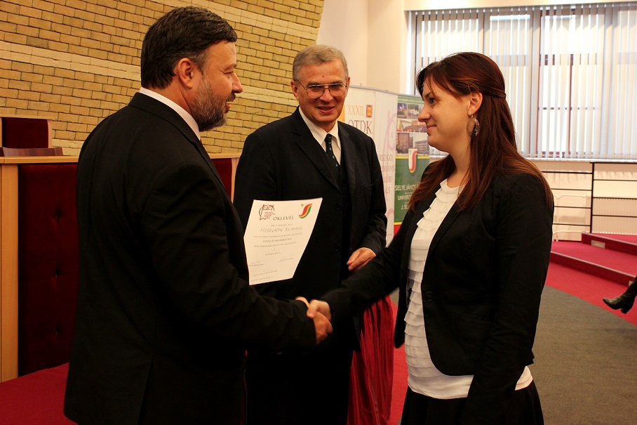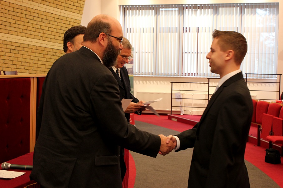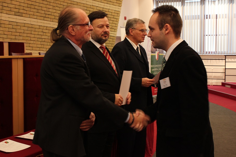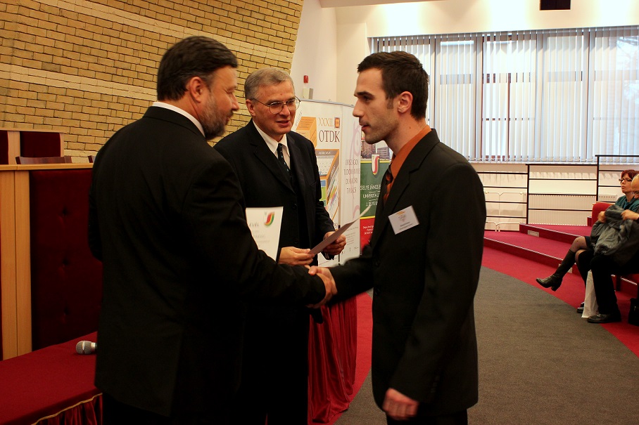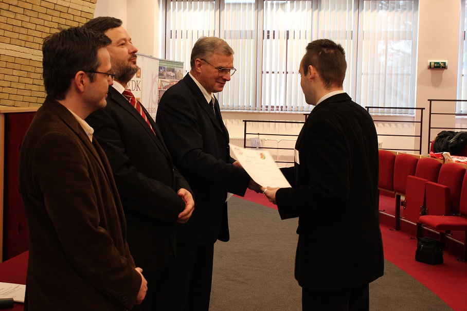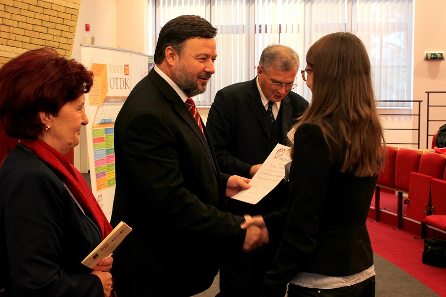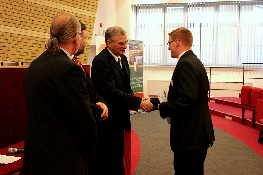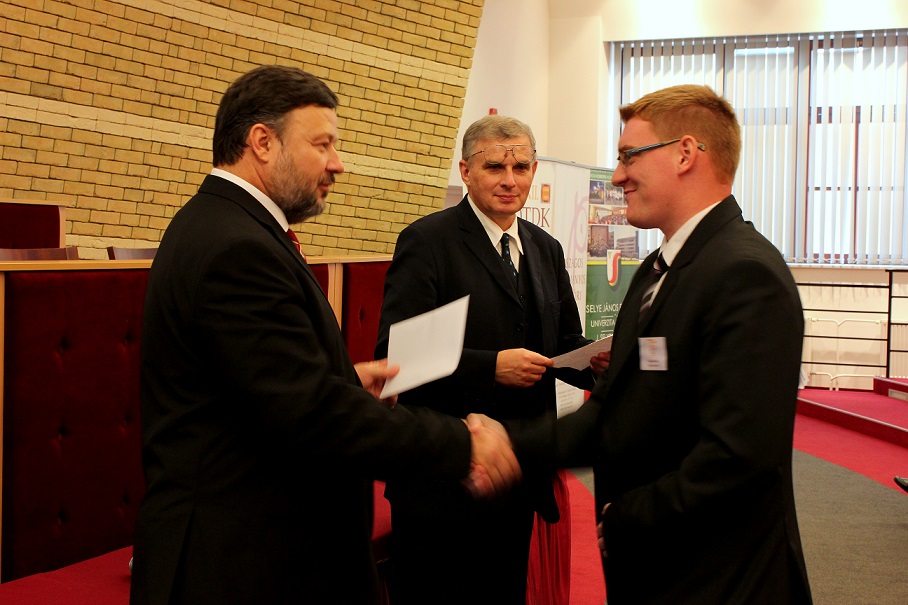 A pénteki plenáris előadást követően, amelyet Pukánszki Béla professzor tartott, a rendezvény a pályamunkák kiértékelésével és a díjak átadásával folytatódott. A konferencián a versenyzőket a szekciózsűrik ajánlása alapján díjazták. A szakmai zsűri hét szekcióban értékelte a 38 benyújtott pályamunkából bemutatott ─ összesen 29 ─ FTDK pályamunkát. Külön örömünkre szolgál, hogy a bemutatott pályamunkák közül 17 a SJE hallgatóié volt. A helyezést elért diákok ösztöndíjban és tárgyjutalomban részesültek, a legszínvonalasabb munkák pedig ajánlást kaptak a 2015 tavaszán megrendezendő magyarországi XXXII. Országos Tudományos Diákköri Konferencián (OTDK) való részvételre. Az Országos Tudományos Diákköri Konferencia (OTDK), amely több mint hat évtizedes múltra tekint vissza, a legkiválóbb egyetemisták és főiskolások tudományos és művészeti eredményeinek bemutatási és értékelési fóruma. Célja a felsőoktatásban tanuló tehetséges hallgatók munkájának megbecsülése, a tanár-diák kapcsolatok erősítése, támogatása, a diáktudományos tevékenység nyilvánosságának megteremtése és elismerése.