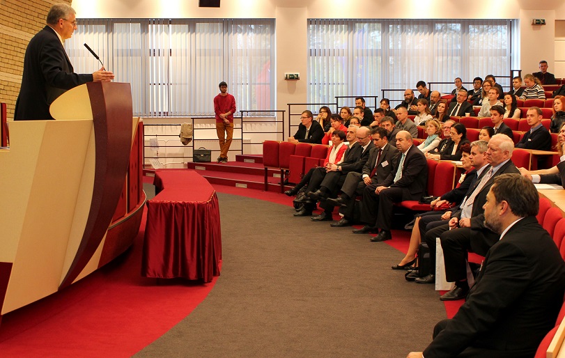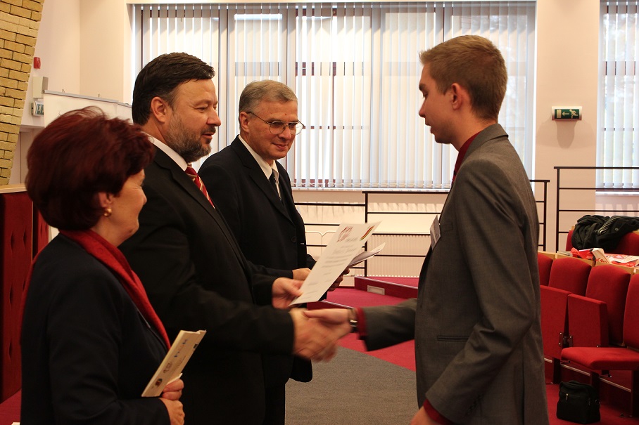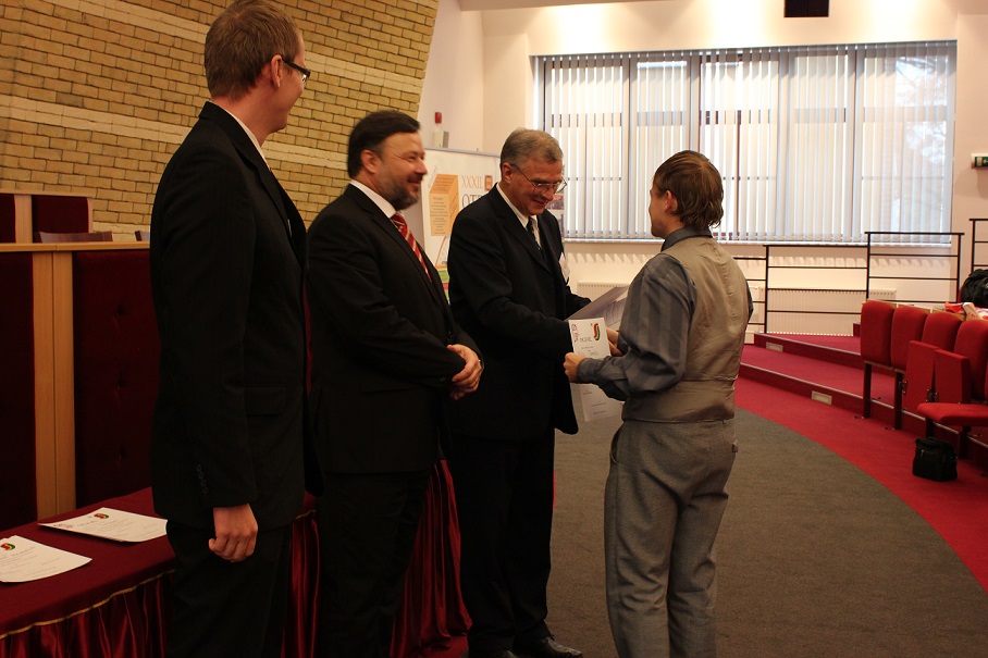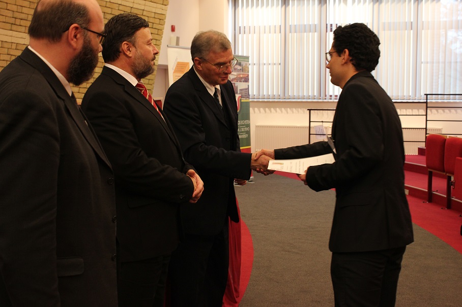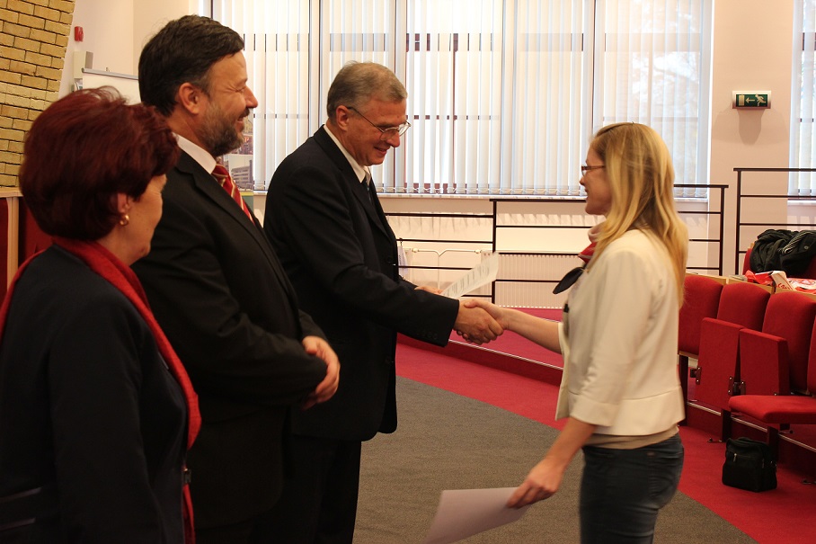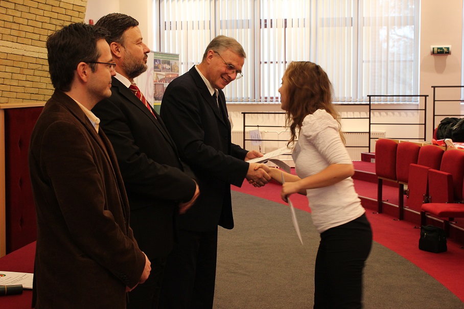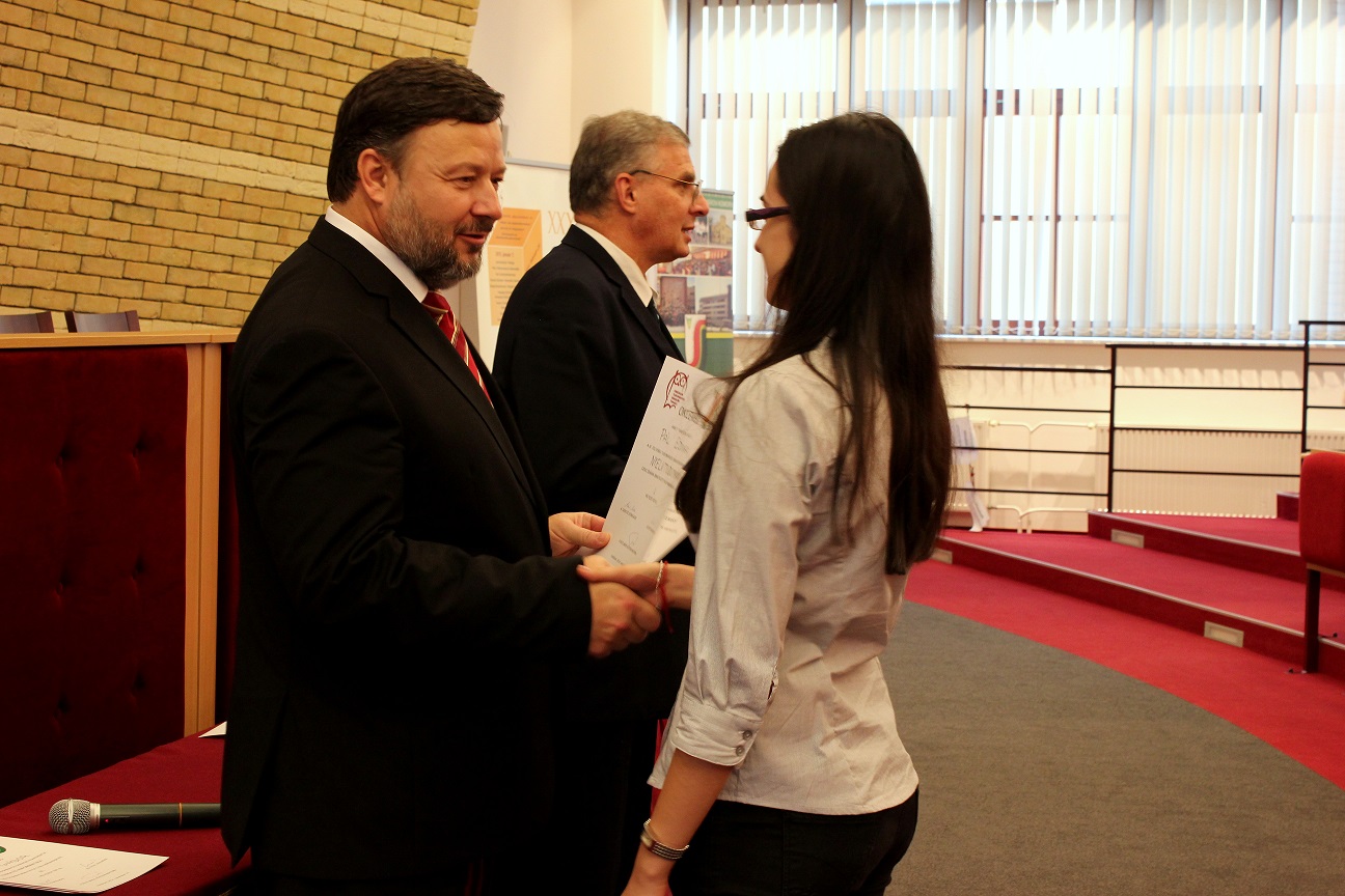 A pénteki plenáris előadást követően, amelyet Pukánszki Béla professzor tartott, a rendezvény a pályamunkák kiértékelésével és a díjak átadásával folytatódott. A konferencián a versenyzőket a szekciózsűrik ajánlása alapján díjazták. A szakmai zsűri hét szekcióban értékelte a 38 benyújtott pályamunkából bemutatott ─ összesen 29 ─ FTDK pályamunkát. Külön örömünkre szolgál, hogy a bemutatott pályamunkák közül 17 a SJE hallgatóié volt. A helyezést elért diákok ösztöndíjban és tárgyjutalomban részesültek, a legszínvonalasabb munkák pedig ajánlást kaptak a 2015 tavaszán megrendezendő magyarországi XXXII. Országos Tudományos Diákköri Konferencián (OTDK) való részvételre. Az Országos Tudományos Diákköri Konferencia (OTDK), amely több mint hat évtizedes múltra tekint vissza, a legkiválóbb egyetemisták és főiskolások tudományos és művészeti eredményeinek bemutatási és értékelési fóruma. Célja a felsőoktatásban tanuló tehetséges hallgatók munkájának megbecsülése, a tanár-diák kapcsolatok erősítése, támogatása, a diáktudományos tevékenység nyilvánosságának megteremtése és elismerése.