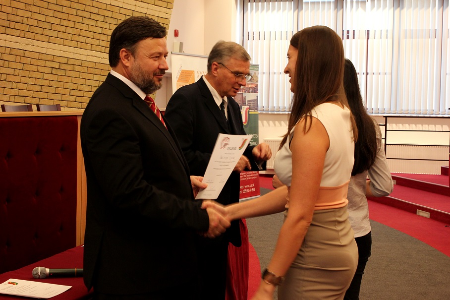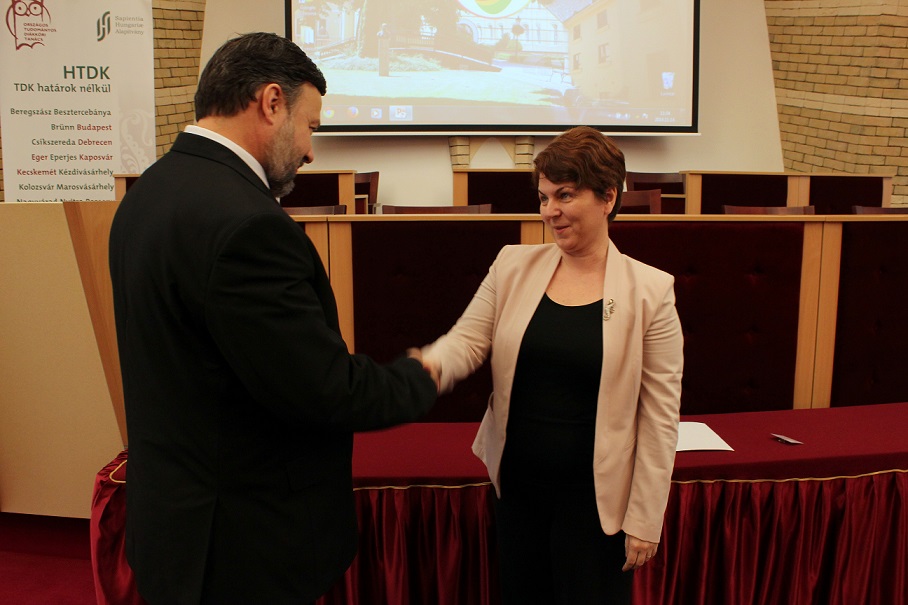 Rendezvényünk záróaktusaként egyetemünk rektora jelképesen átnyújtotta a jövőre megrendezésre kerülő X. FTDK szervezéssel járó stafétáját Bárczi Zsófiának, a nyitrai Konstantin Egyetem KETK dékánhelyettesének