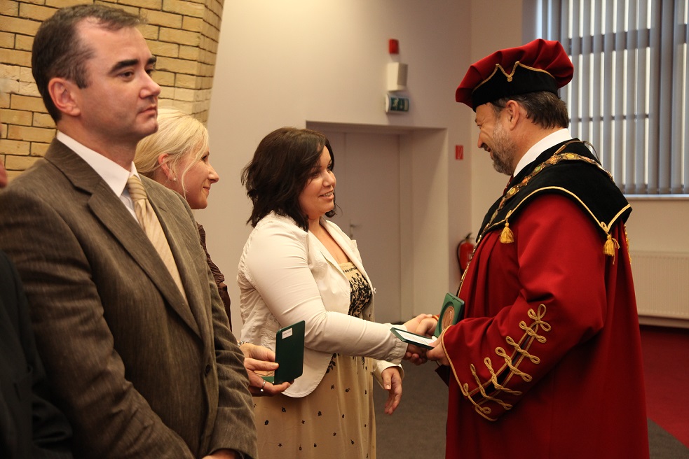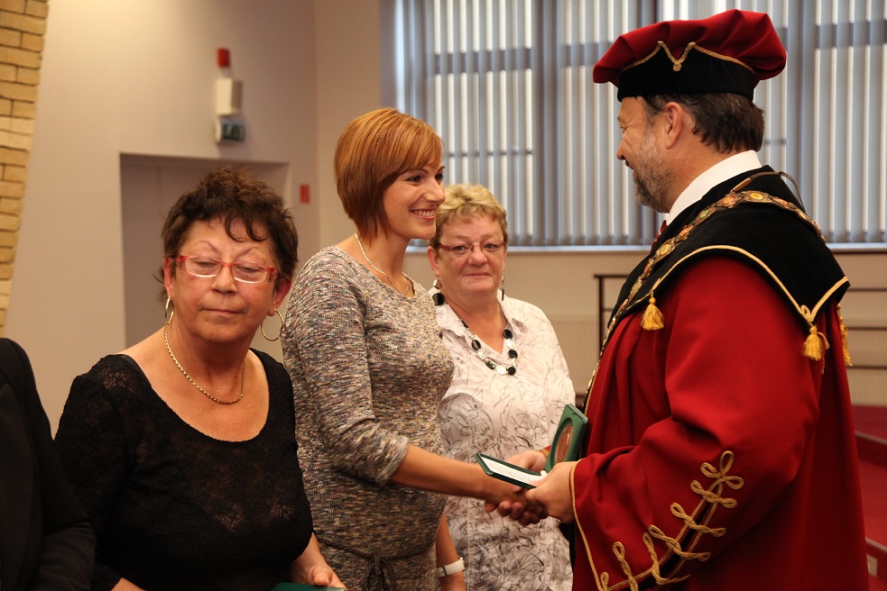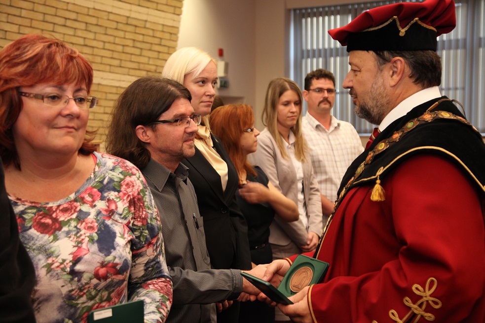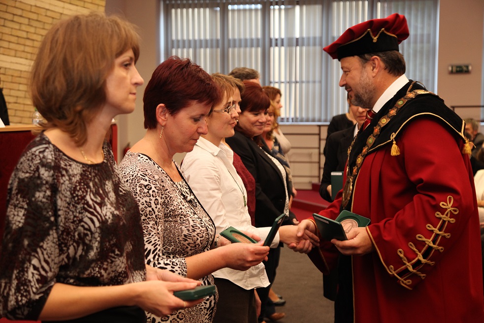 Köszönetet mondott mindazon alkalmazottaknak, akik az egyetem érdekében kifejtett tevékenységükkel, támogatásukkal és eredményes együttműködésükkel hozzájárultak a SJE létéhez, fejlődéséhez, jó hírnevének megalapozásához és az elmúlt időszak alatt elért eredményekhez. Ezt követően a publikációs tevékenységért járó rektori dicséretek, valamint az egyetemért kifejtett munka elismeréseként járó díszérmék és emlékérmek átadására került sor, melyeket a Gazdaságtudományi, a Tanárképző és a Református Teológiai Karok oktatói és dolgozói, az Informatikai Szolgáltató Központ, az Egyetemi Könyvtár, a Kollégium, a Karrier-tanácsadó Központ, az Üzemeltetési–műszaki részleg, a Sportközpont és a Rektori Hivatal munkatársai, a Hallgatói Önkormányzat eddigi elnökei vehettek át.