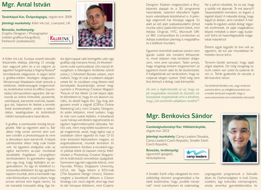 5. Mondd el mi van veled, hogy alakul a karriered, mik a terveid, és ami a legfontosabb, oszd meg velünk, hogy milyen a fogadtatása egy „selyés“ diplomásnak! Ezzel nagyban segítheted és motiválhatod a jelenlegi és jövőbeli végzősöket is. Az Alumni profilok  kitöltésének legegyszerűbb módját ide kattintva  érheted el, de személyes beszélgetés során mi is szívesen elkészítjük ezt rólad. Minden segítséget köszönünk, hiszen egymás támogatása az összetartozásunk kulcsa!