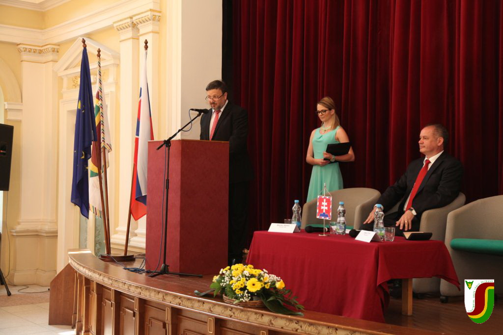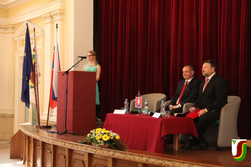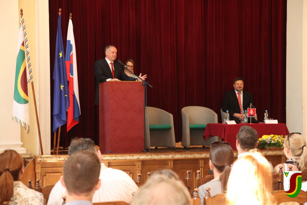 Ezek után az egyetem hallgatóival és oktatóival talalálkozott a Tiszti Pavilon dísztermében, ahol tartalmas vitát folytatott a bel- és külpolitikát érintő kérdésekkel kapcsolatban. A SJE alkalmazotti közössége és hallgatósága nagy megtiszteltetésnek tekinti, hogy Szlovákia államelnöke látogatásával is kiemelte intézményünk fontosságát a szlovákiai közélet, és benne a szlovákiai magyarság számára.