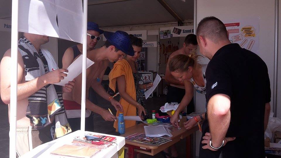 Munkatársaink interaktív játékokkal készültek – a résztvevők pedig a frissen szerzett ismeretekkel, könnyűszerrel oldották meg a feladatsorokat. A legügyesebbek nem álltak tovább üres kézzel: egyetemünk logójával díszített apró ajándéktárggyal – pólóval, bögrével, esernyővel távoztak. A kevésbé sikeresek is kaptak ajándékot: színes labdák, tollak és kulcstartók találtak gazdára a magyarországi Velencében.