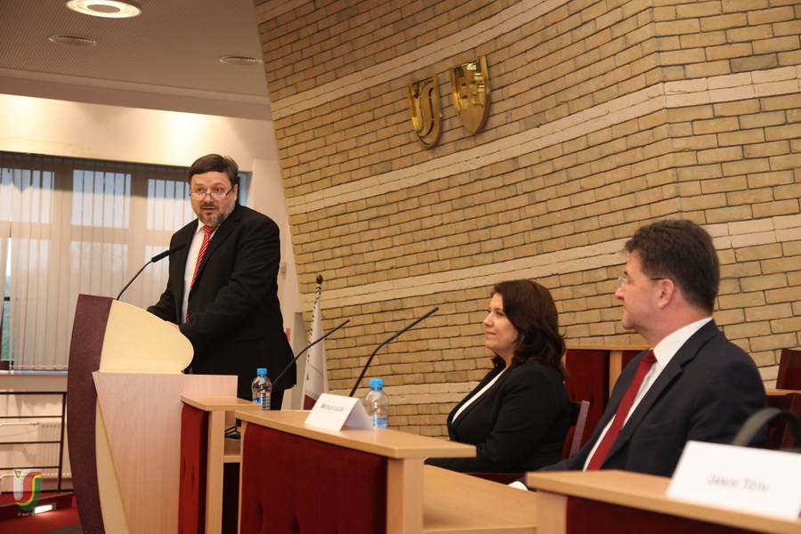 Február 23-án látogatást tett egyetemünkön Miroslav Lajčák, a Szlovák Köztársaság miniszterelnök-helyettese, külügy- és európai ügyekért felelős minisztere. Látogatása során találkozott intézményünk hallgatóival és az egyetem vezetésével. „Az EU jelenlegi kihívásai és Szlovákia a nemzetközi kapcsolatokban“ elnevezésű előadása teltházas közönség előtt zajlott. Rendkívül sikeresnek mondható az előadást követő vitafórum is, amely leginkább az EU aktuális problémáit érintette.