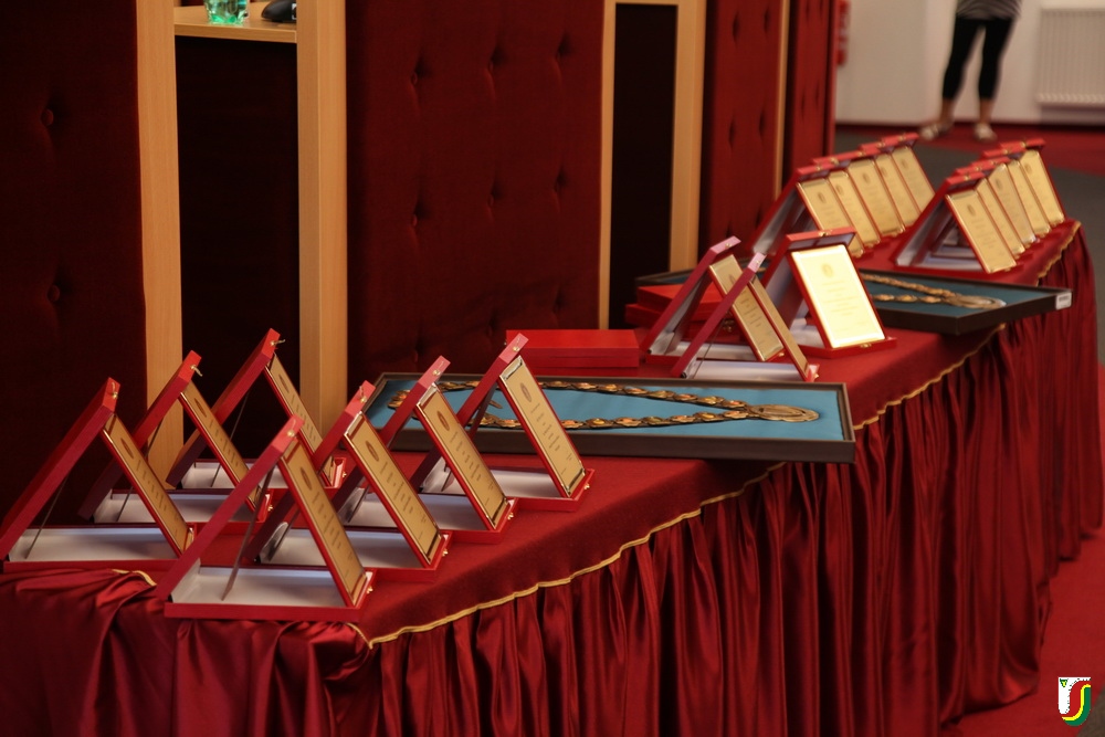 Az elmúlt akadémiai évben folyatatott kiemelkedő tudományos publikációs tevékenységük elismeréseként az ünnepségen Rektori Díjban részesült az egyetem 24 oktatója, a díjak három kategóriában kerültek átadásra: külföldi karentált adatbázisban jegyzett, Web of Science vagy Scopus adatbázisban jegyzett külföldi tudományos publikációért és külföldi kiadónál megjelent tudományos monográfiáért vehették át a díjazottak az elismerést. A továbbiakban a Debreceni Egyetem rektora által, a Selye János Egyetem részére adományozott Pro Universitate Debreceniensi kitüntetés került átadásra. Egyetemünk e tekintélyes elismerést az intézményeink közti kiváló kapcsolatápolásért és eredményes teljesítményéért kapta.