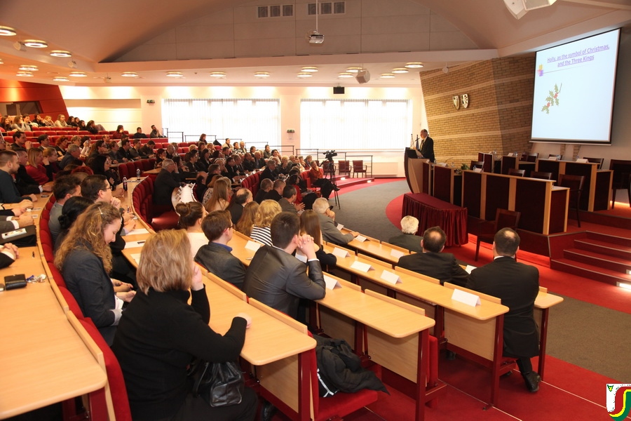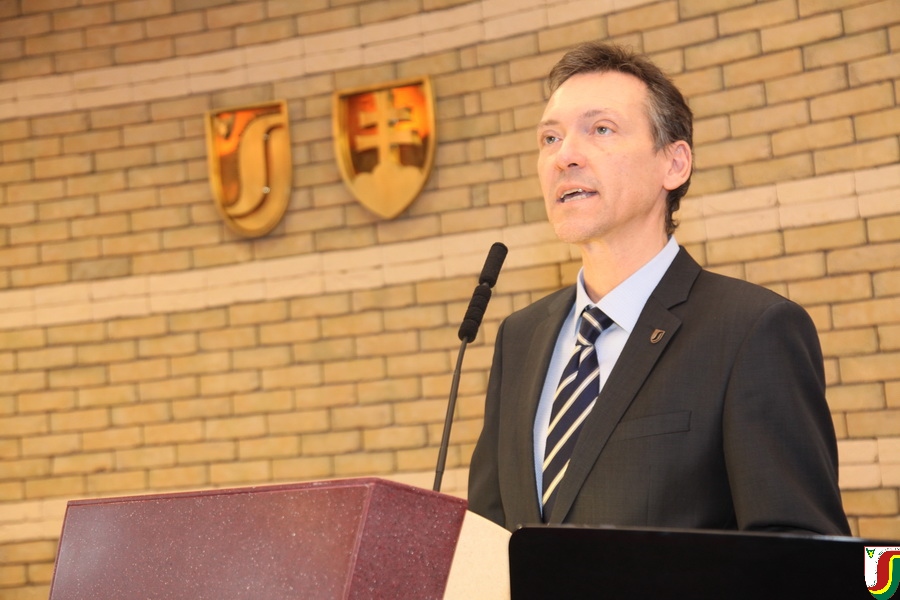 Az ünnepségen Juhász György, egyetemünk leendő rektora köszönte meg a leköszönő rektor, Tóth János az egyetem és a szlovákiai magyarság érdekében kifejtett sokéves, átfogó tevékenységét.