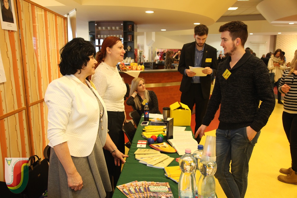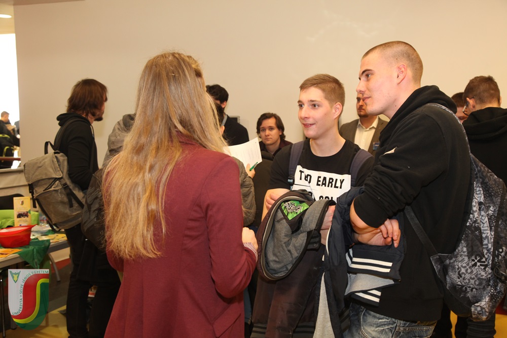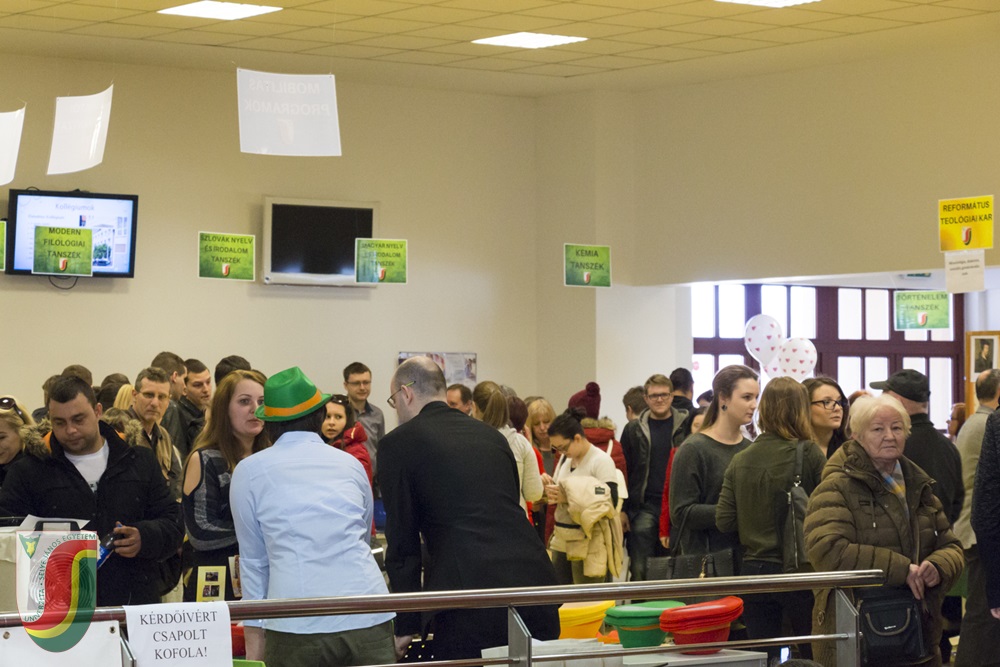 Minden résztvevőnek már a bejáratnál a kezében landolt egy kiadvány, mindenféle hasznos leírással az egyetemi évekről és a továbbtanulásról. Továbbá térképet, kérdőívet és matricagyűjtő lapot is találhattak a lapok között. Juhász György, újonnan megválasztott rektor köszöntője után, és már a díszteremben tartott kari bemutatkozó előadások alatt is a látogatók ellepték a standokat. Miután Poór József kedvcsináló módon mutatta be, miért jó közgazdásznak lenni, a közgazdaságtan és menedzsment szak iránt érdeklődők a falra kivetített kvíz által ismerkedhettek meg közelebbről a szakma részleteivel. A Tanárképző Kar előadása után a biológusok ornitológiai feladatokkal, a kémikusok látványos kísérletekkel, az informatikusok drónokkal, a matematikusok logikai játékokkal igyekeztek a diákok kedvét meghozni a továbbtanuláshoz. A Református Teológiai Kar standjánál egy kvíz segítségével mutatták be az ott tanulható szakokat. Az óvóképzős standfelelősök játékokkal, a Testnevelés Tanszék képviselői a Sportközpont-béli kalauzolás mellett sípszóval és sportolókkal várták a kíváncsiskodókat. Az Egyetemi Könyvtár a könyvek és jegyzetek közti barangolást egy könyvből épített toronnyal koronázta meg. A hallgatói önkormányzat videós és képes összeállításban mutatta meg, milyen egy „selyés” egyetemista pezsgő élete. A karrier-tanácsadó központ a színes szerencsekerék mellett a Valentin-nap jegyében egy páros fotókiállítást is összeállított.