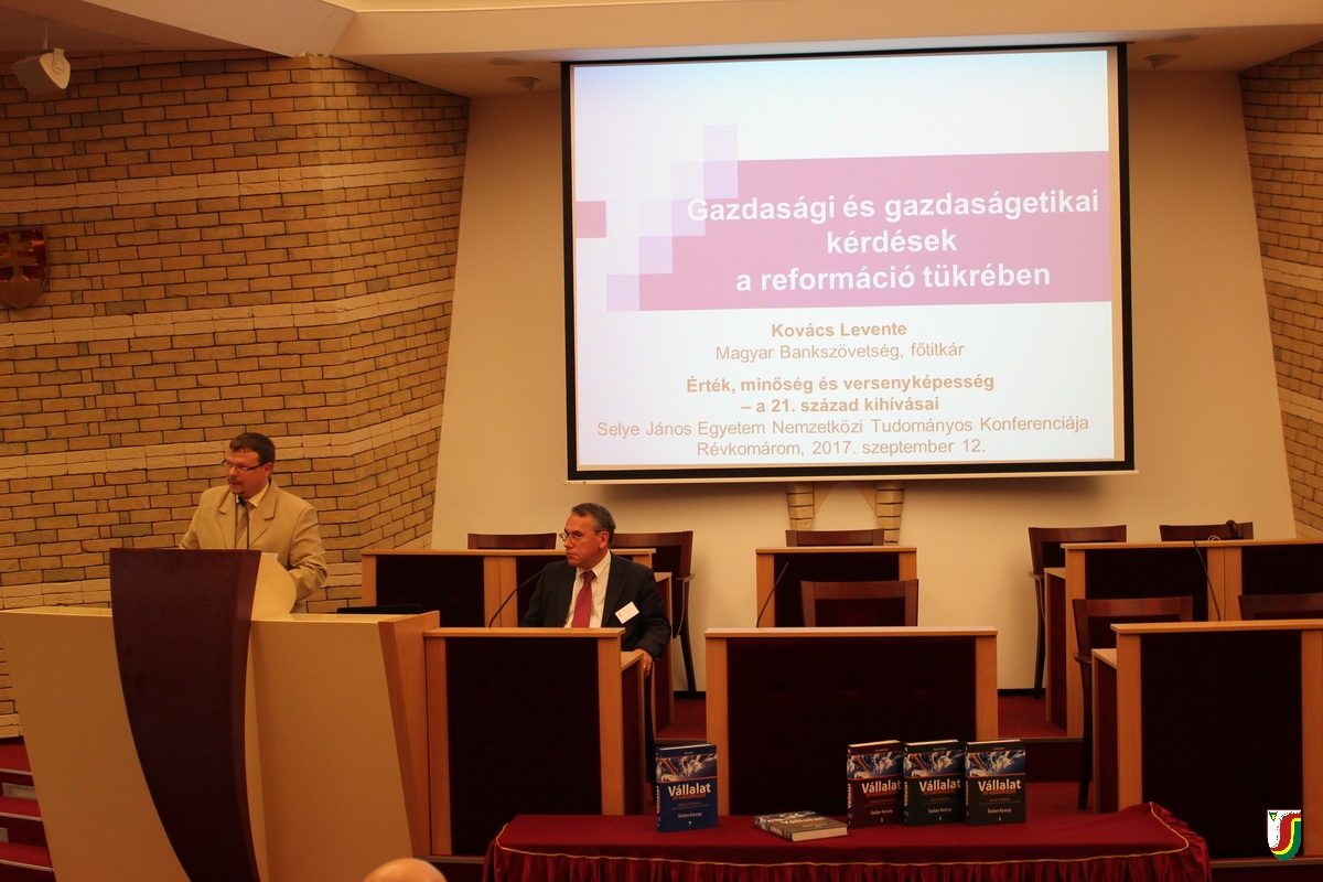 Egyetemünk hagyományosan minden akadémiai év elején megrendezi Nemzetközi Tudományos Konferenciáját, amely az idén 2017. szeptember 12-13-án „Érték, minőség és versenyképesség – a 21. század kihívásai” címszó alatt került megrendezésre 7 szekcióban a intézményünk konferencia-központjában. A konferenciát Dr. habil. PaedDr. Juhász György, PhD., egyetemünk rektora nyitotta meg, aki egyben vállalta a konferencia védnökségét is. A konferencia megnyitó részében hangzott el két meghívott előadónk plenáris előadása is. Az első előadónk Dr. Setényi János oktatáskutató volt, az előadásának címe: „Tanulás középpontba helyezése – XXI. századi iskola“. Második plenáris előadónk Dr. Kovács Levente, a Magyar Bankszövetség főtitkára volt, az előadásának címe: „Gazdaság és gazdaság-etikai kérdések a reformáció tükrében“. A két aktuális problémákkal foglalkozó plenáris előadás megalapozta a konferenciánk magas szakmai színvonalát. A plenáris előadásokat követő, a reformáció 500. évfordulója alkalmából rendezett kiállítást, Dr. Milisits Máté művelődéstörténész nyitotta meg.