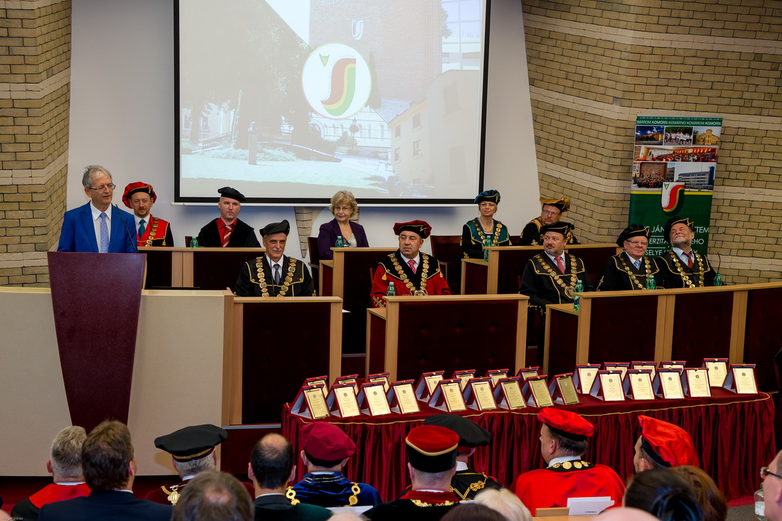 A rektori köszöntőt követően Peter Krajňák az Oktatási Minisztérium államtitkára és Stubendek László, Komárom polgármestere szólt az akadémiai közösséghez és a meghívott vendégekhez.