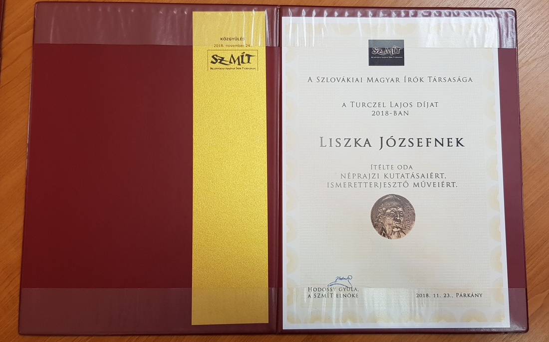 Liszka József etnológus, a Selye János Egyetem rektorhelyettese kapta idén a Szlovákiai Magyar Írók Társasága által alapított Turczel Lajos-díjat. A kiemelkedő tudományos munkásságért járó szakmai elismerést az írószövetség Őszi irodalmi fesztiválján (2018. november 23.) Hodossy Gyula, az SZMÍT elnöke adta át Liszka Józsefnek néprajzi kutatásaiért, ismeretterjesztő műveiért. Laudációt Baka L. Patrik mondott.