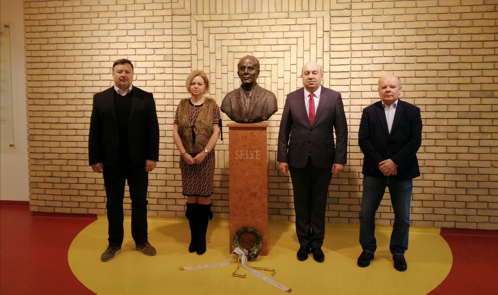 Az SJE vezetése 2020. január 27-én koszorút helyezett el egyetemünk konferencia-központjában névadója, Selye János szobránál születésének 113. évfordulója alkalmából.