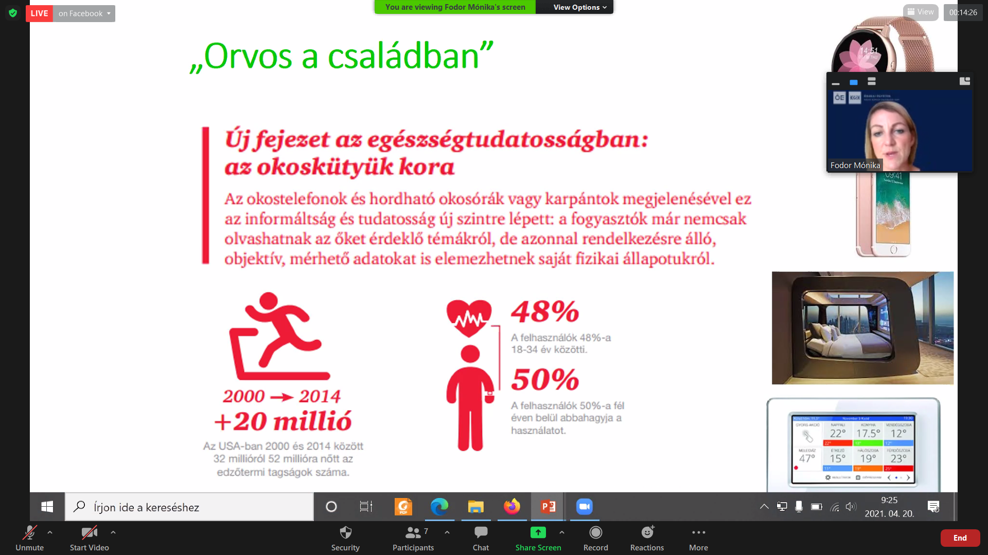 A csütörtöki napot reggel kilenc órakor egy kerekasztal-beszélgetés nyitotta meg a szakmai gyakorlat és munkaadói témával. Tizenegy órakor a Karrier-tanácsadás a Selye János Egyetemen előadás résztvevői lehettünk. Délben Virtuális Állásbörze – az álláskeresés legmodernebb és legegyedibb módjai előadásra került sor. Tizenhárom órától a Nagyvállalat és az ajánlat (cég és munkahelyi pozíciók bemutatása és karrierépítési lehetőségek) előadáson vehettünk részt. Délután három órakor Hodossy Katalin adott elő, Kertből a tányérra cím alatt, bemutatta nekünk milyen ételeket ehetünk nyers vegánként, pénztárcát kímélően. Fél öttől Szépe Csilla tartott online tornát mindenkinek. A napot pedig egy esti Kahoot! kvízzel zártuk.