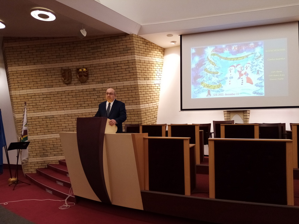 Két év kihagyást követően 2022. december 15-én újra együtt ünnepelhette a közelgő karácsonyt a Selye János Egyetem alkalmazotti közössége. A rendezvény rektori évértékelővel vette kezdetét, amely során Juhász György rektor felelevenítette a 2022-es év legfontosabb eseményeit és mozzanatait. A visszatekintés után az egyetem női karának, a Cantus Iuventusnak köszönhetően igazi adventi hangulatban volt része az ünnepségen megjelenőknek. A kórust felkészítette Orsovics Yvette tanszékvezető, karnagy, közreműködtek a Tanárképző Kar oktatói Csehi Ágota és Tóth-Bakos Anita, valamint a kar hallgatói. Az ünnepség közös karácsonyi vacsorával zárult.