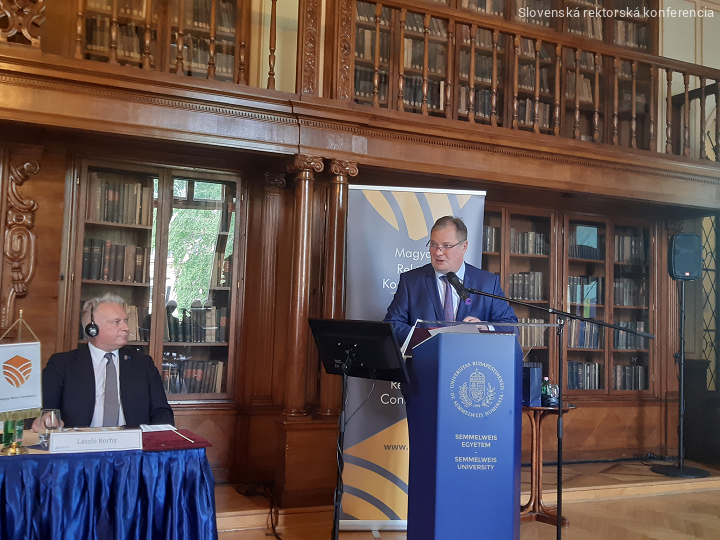 2023. május 25-26-án a Semmelweis Egyetemen került merendezésre a II. Magyar-Szlovák Rektori Fórum. A plenáris ülés során “A felsőoktatási intézmények irányítása az egyes országok jogszabályainak tekintetében”, “Tudomány és kutatás a felsőoktatási intézményekben és azon kívül”, valamint “A felsőoktatási intézmények finanszírozási rendszerei” téma került megtárgyalásra szakmai előadások keretében. A párhuzamosan zajló kerekasztal-beszélgetések formájában az Európai egyetemek, és a Magyarországi szlovák, egyetemi szinten szlovák nyelvű magyar oktatással kapcsolatos tapasztalatok kerültek megosztásra a résztvevők között. Borhy László, az MRK elnöke és Rudolf Kropil, a Szlovák Rektori Konferencia elnöke zárta a fórumot. Egyetemünket Juhász György rektor képviselte.