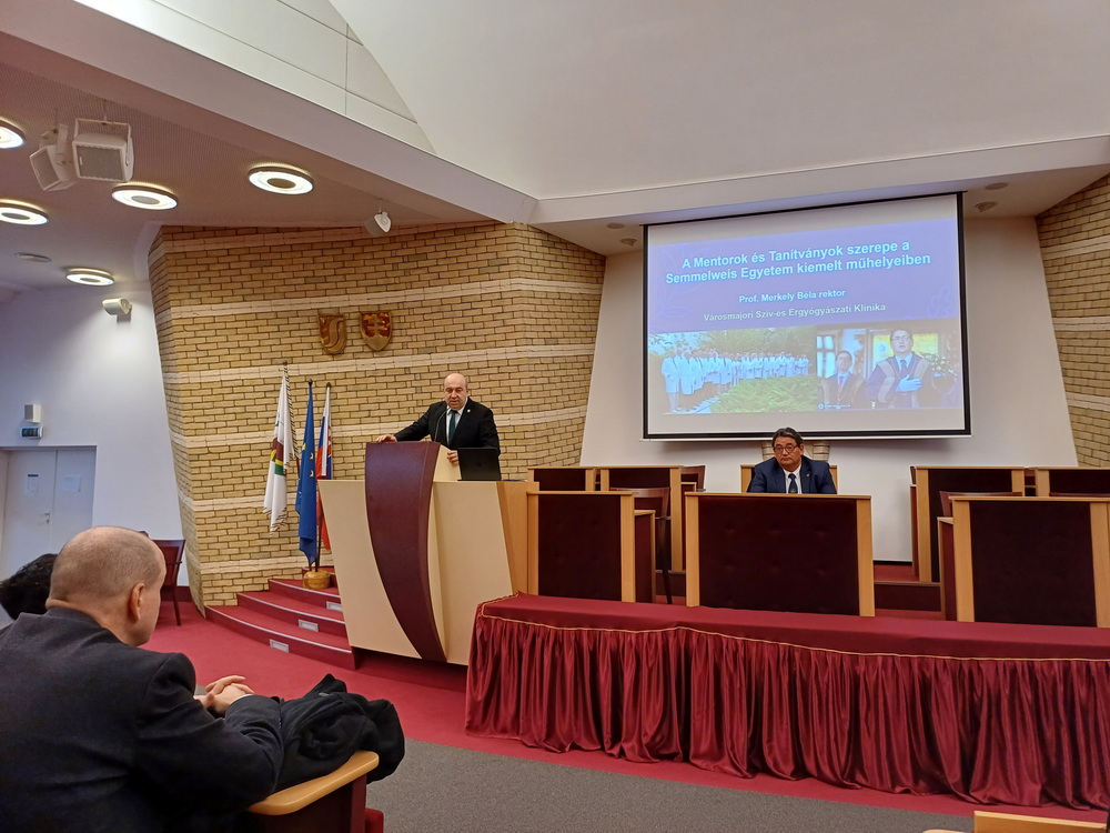 „Mentorok és tanítványok szerepe a Semmelweis Egyetem kiemelt műhelyeiben” címmel tartott előadást a Selye János Egyetemen 2023. november 24-én Merkely Béla professzor, a budapesti Semmelweis Egyetem rektora. Több mint kétszáz egyetemi hallgató és oktató, valamint a Komárom és környéki orvostársadalom képviselői voltak kíváncsiak a szakember előadására.