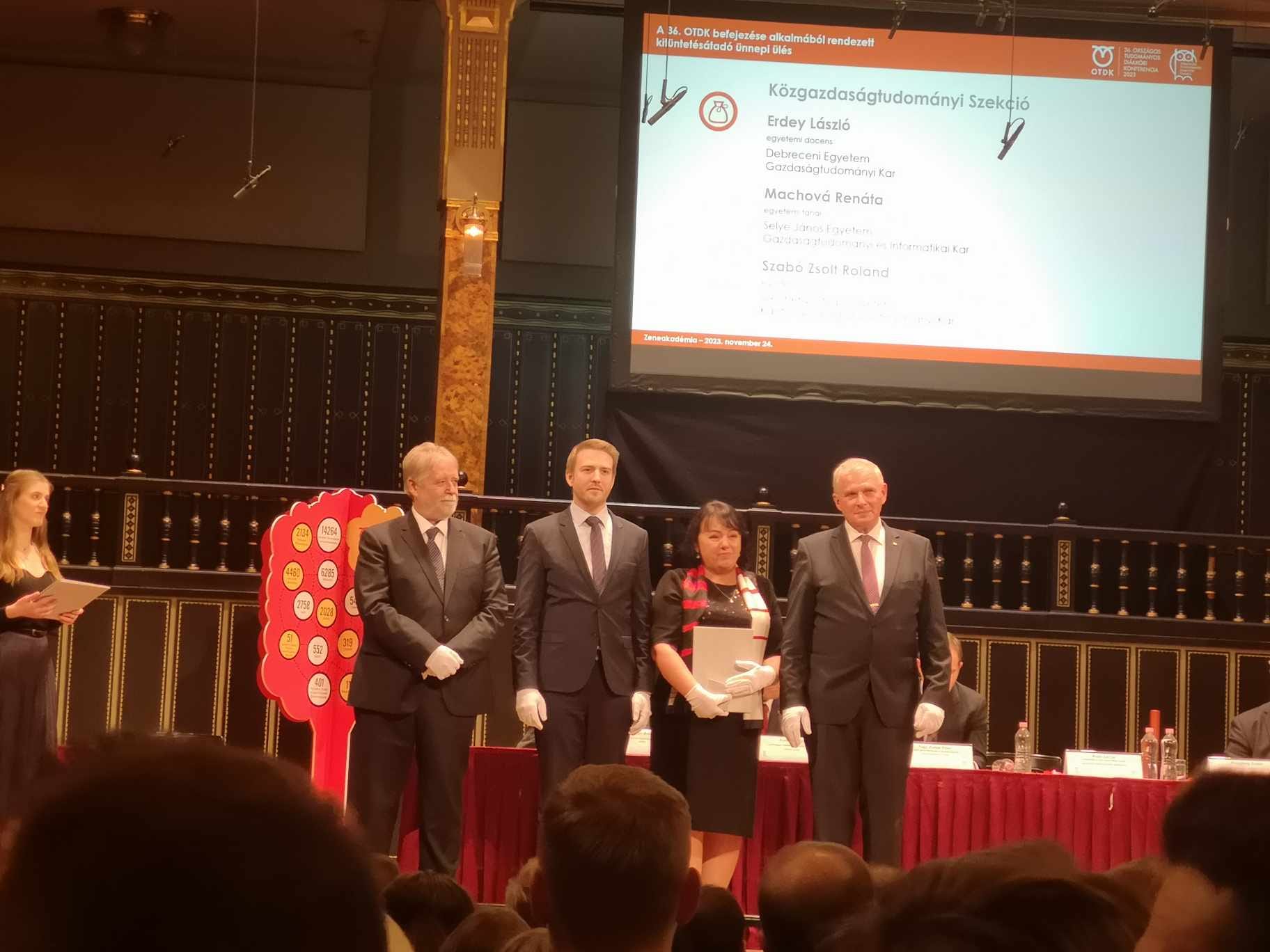 2023. november 24-én a Zeneakadémia Nagytermében tartotta kitüntetésátadó ünnepi ülését az Országos Tudományos Diákköri Tanács. A díjátadó ünnepségen kiemelkedő témavezetői és tudományos diákköri szervezői munkájáért “Mestertanár Aranyérem” elismerést vehetett át Dr. habil. Ing. Hajabáč Machová Renáta, PhD., oktatásért és külkapcsolatokért felelős rektorhelyettes. A neves elismeréshez ezúton is gratulál egyetemünk akadémiai és alkalmazotti közössége.