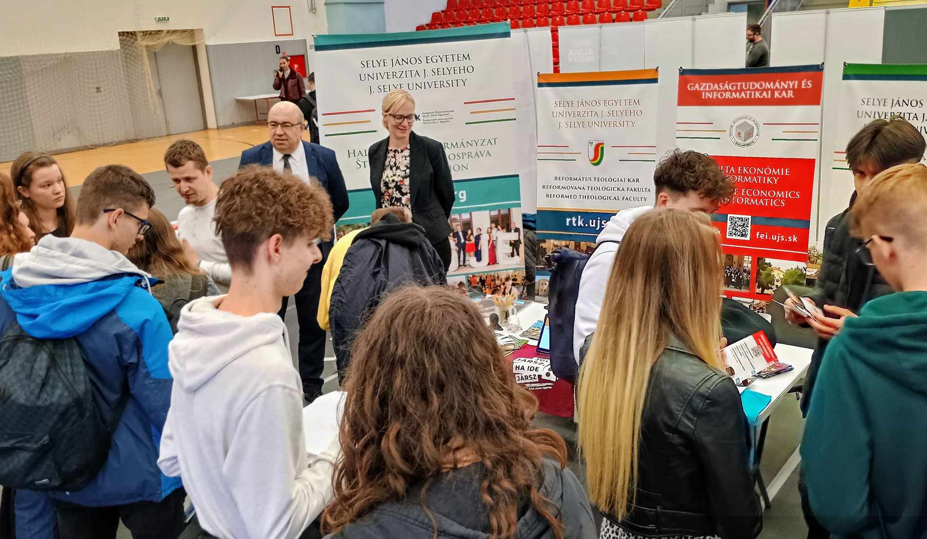 A Szlovák Oktatási Minisztérium által szervezett „ALMA MATER - a hely, ahol megtalálod az egyetemed" elnevezésű, a felsőfokú továbbtanulást és az ösztöndíj lehetőségeket népszerűsíteni hivatott körút 2025. április 1-i állomásán a komáromi sportcsarnokban számos érdeklődő diák látogatta meg a Selye János Egyetem standját. Az eseményt megtisztelte jelenlétével JUDr. Ing. Tomáš Drucker, MSc. szlovák oktatásügyi miniszter is.