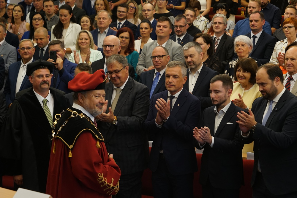 Az ünnepségen elsőként az újonnan kinevezett rektor köszöntötte a meghívott vendégeket. Beszédében ismertette az elmúlt akadémiai év legfontosabb eseményeit, kiemelten foglalkozott a VER2026 tudománymetriai értékeléssel, az egyetem minőségbiztosítási rendszerével, az új gyakorlatorientált és doktori tanulmányi programokkal, a hallgatói létszámok alakulásával. Hangsúlyozta, hogy a hallgatók száma már évek óta stabil az intézményben, ami fontos a tervezhető fejlődés szempontjából is.