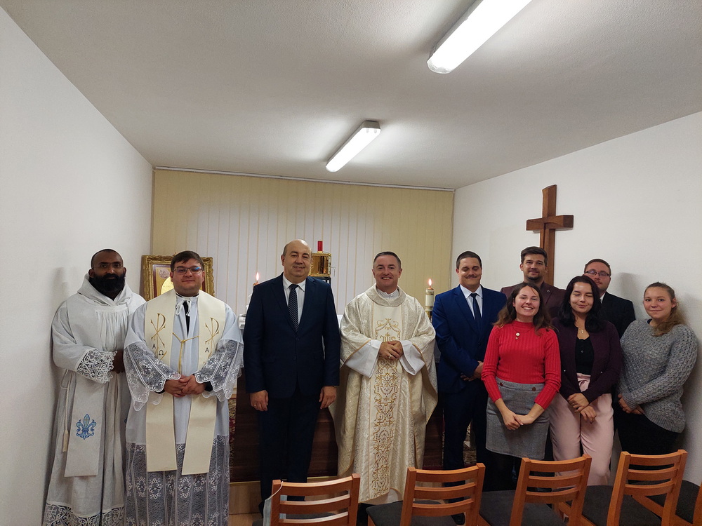 Köszöntőjében Juhász György rektor kiemelte, hogy Karaffa János atya emlékét megőrizve célunk, hogy minél több komáromi egyetemi hallgató imádkozzon együtt ebben a kápolnában, hogy a keresztény értékek tovább erősítsék az itt diplomát szerző felvidéki magyar értelmiségieket.