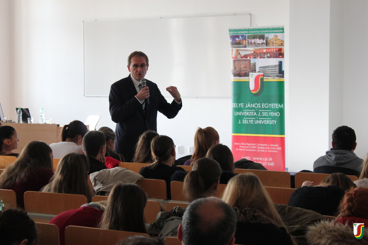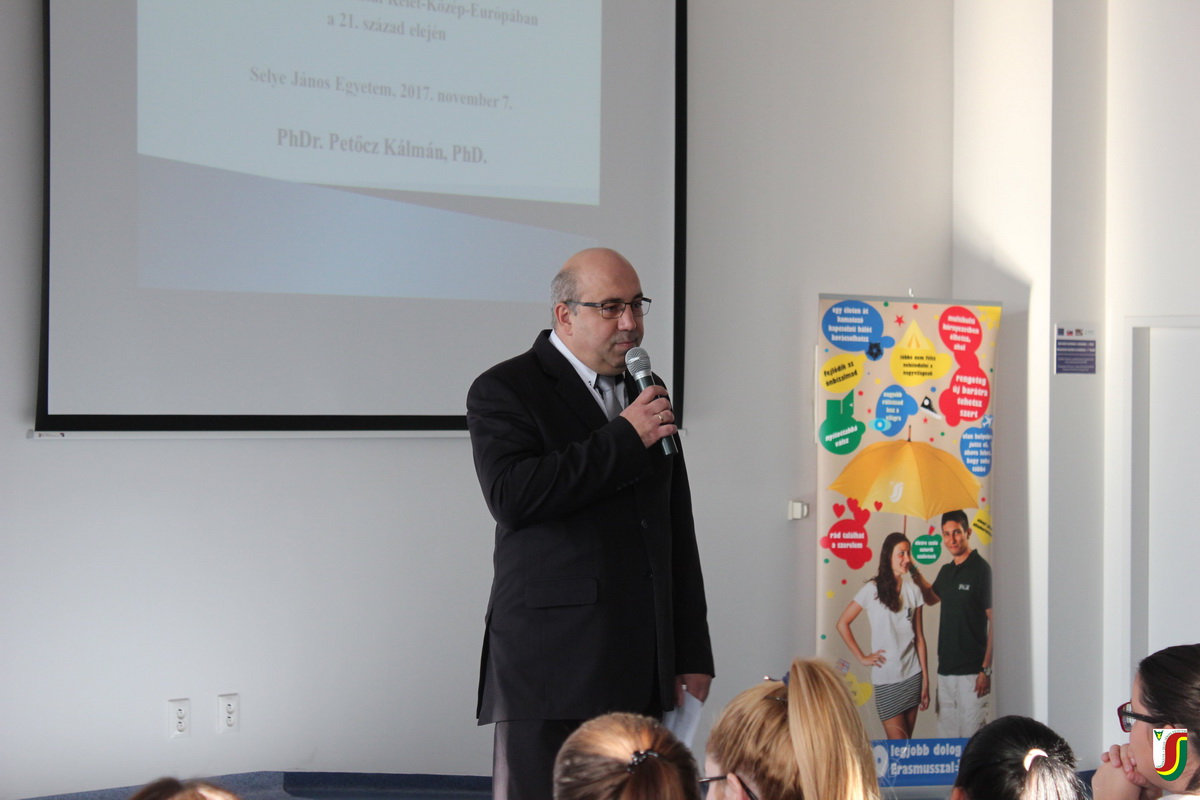 PhDr. Kálmán Petőcz, PhD., bývalý veľvyslanec Slovenskej republiky pri OSN v Ženeve sa 7. novembra 2017 na pôde Univerzity J. Selyeho stretol s neobyčajne početným obecenstvom. Vo svojej prednáške hovoril o otázkach pluralizmu a multikulturalizmu v stredovýchodnej Európe 21. storočia. So svojím príhovorom podujatie otvoril dr. habil. PaedDr. György Juhász, PhD., rektor UJS, po ktorom dr. habil. PhDr. József Liszka, PhD., prorektor pre medzinárodné vzťahy, predstavil prednášajúceho hosťa. Cieľom samotnej prednášky bolo diskutovať medzi inými aj o postavení tradičných národnostných menšín, riešení otázky utečencov či limitoch národnej/štátnej suverenity v globalizovanom svete (najmä v rámci Európskej únie). Prednáška sa uskutočnila v rámci Týždňa vedy a techniky na Slovensku a v rámci Maďarského sviatku vedy. Taktiež bola spomienkou na 30. výročie existencie programu Erasmus.